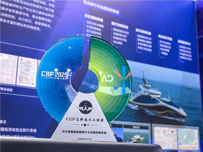 同样备受瞩目的,还有中船集团第七〇四研究所“中大型船舶自主航行与远程控制系统”,该成果斩获“CIIF高新技术工程奖”,其展现的技术独创性、系统突破性和行业引领性,成为本届工博会智能船舶领域的一大亮点。