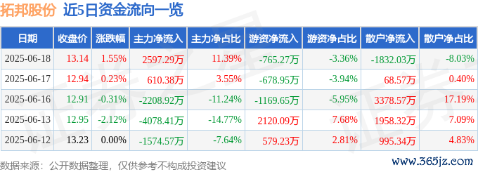 近5日资金流向一览见下表: